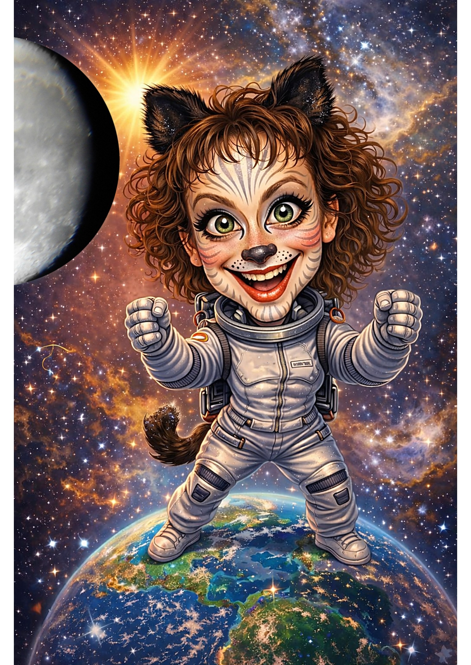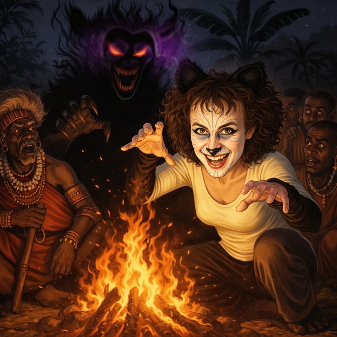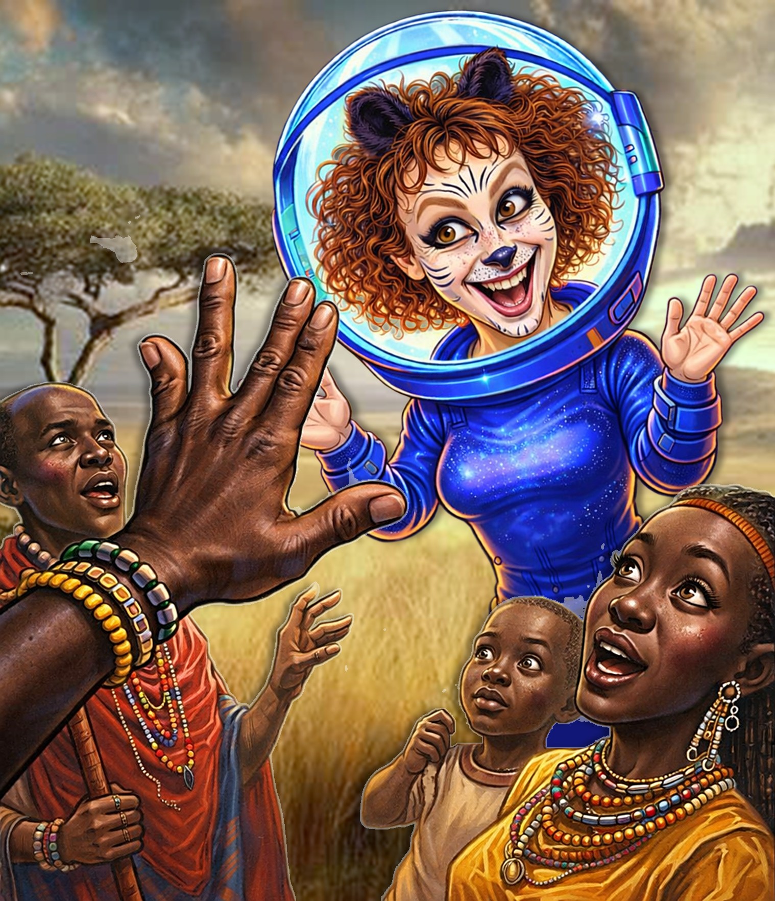 The Catusapien can’t return to her home planet. The alien will live out the rest of her life in East Africa, carrying on a lifelong friendship with Cassidy, who will name her Gotham Kitty. When the Evil Shadowy Figure is long out of people’s minds and some years after Gotham Kitty’s passing, the story of this adorable alien’s arrival and life in East Africa becomes the Chagga’s new campfire story to share with the future generations.