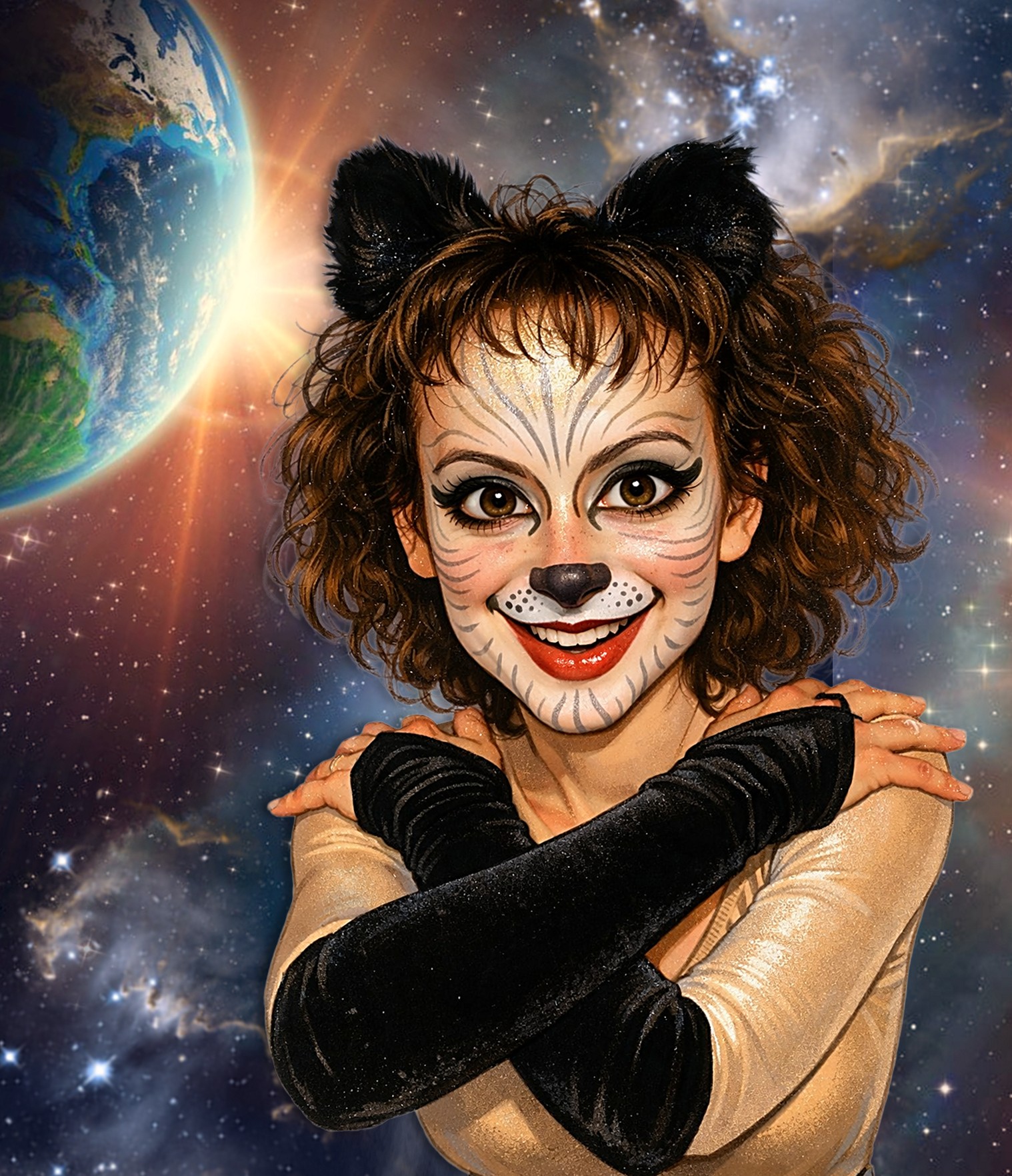 Originally from Buffalo, New York, Allison Banes, a pretty twenty-eight year old woman with brown-hair and eyes, slim, very independent and an aspiring primatologist, is in Tanzania working on a Doctor of Philosophy degree from Cornell University of Ithaca, New York. While conducting her PhD dissertation research in behavioral ecology of black-and-white colobus monkeys in the Mount Meru Forest Reserve of Arusha National Park, Allison sees the Brozian spaceship explode in mid-air and crash land. Nearby the crash site, the Catusapian crawls out of the escape pod, suffering from something like jet lag, her body has trouble breathing the air on the Earth. Allison finds the half-feline half-human extraterrestrial asleep. Overtaken by this discovery, she carries the alien off to her Honda Odyssey minivan, taking her home with her for observation. She even names her Kitty so if anyone hears her call out to her, they think she has a cat.